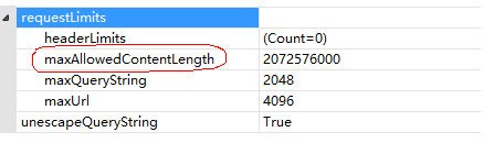 4. <requestLimitsmaxAllowedContentLength="2072576000"/>