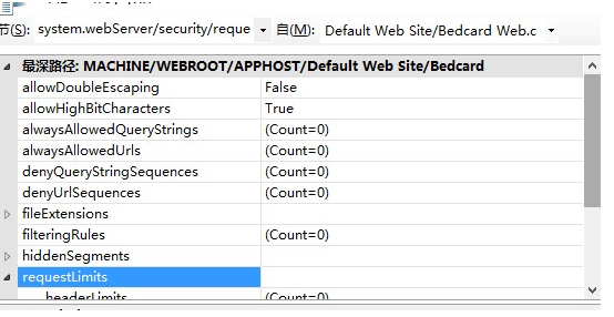 2、打開后根據(jù)這個路徑打開:system.webserver/security/requestFiltering