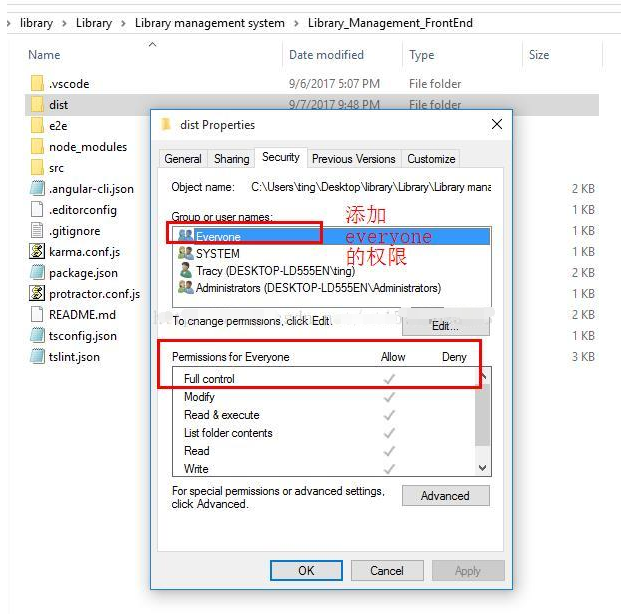 解決:找到訪問的文件,右擊屬性→安全→添加everyone的訪問權限。