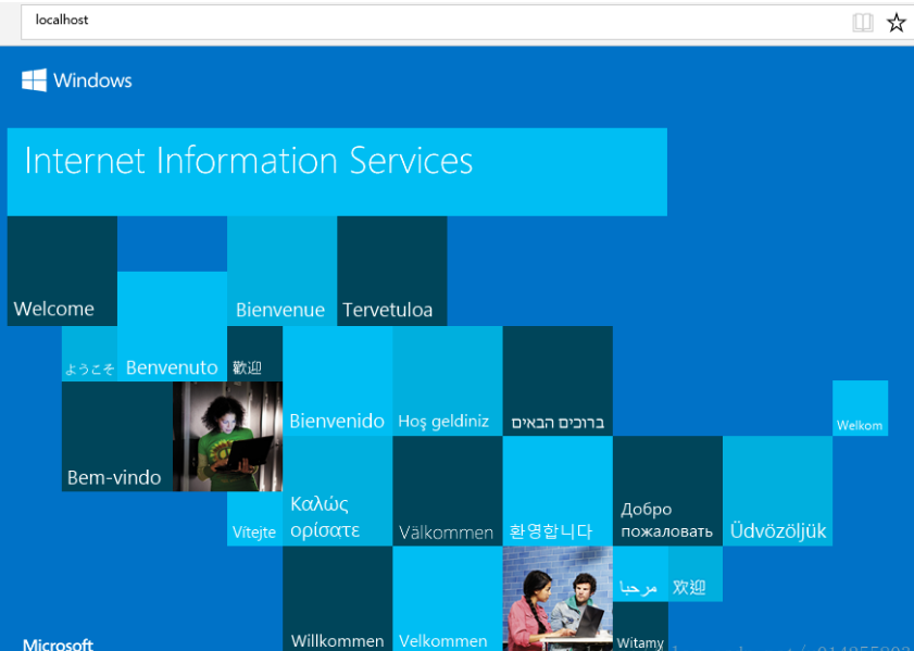 (4)、重啟完畢后在瀏覽器輸入localhost后回車,若出現歡迎頁面則說明IIS已經成功安裝。