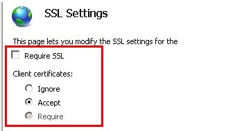 3、站點的SSL設置,確保“RequireSSL”未選中。