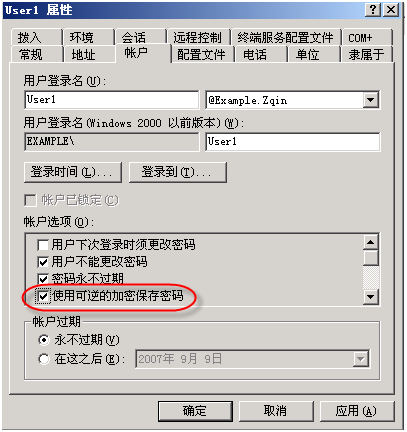 如需要使用ActiveDirectory隔離用戶,用戶必須使用可逆的密碼。如先使用的是不可逆的密碼,修改后需重新設置密碼。