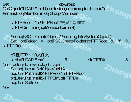 在ActiveDirectory數據庫中用二個屬性用來支持隔離用戶:FTPRoot(值為FTP根目錄)、FTPDir(值為用戶的FTP主目錄)。