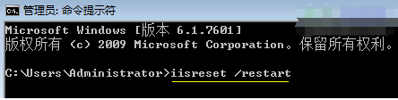保存文件后,需要重啟IIS使設置生效。重啟IIS可用DOS命令:iisreset/restart