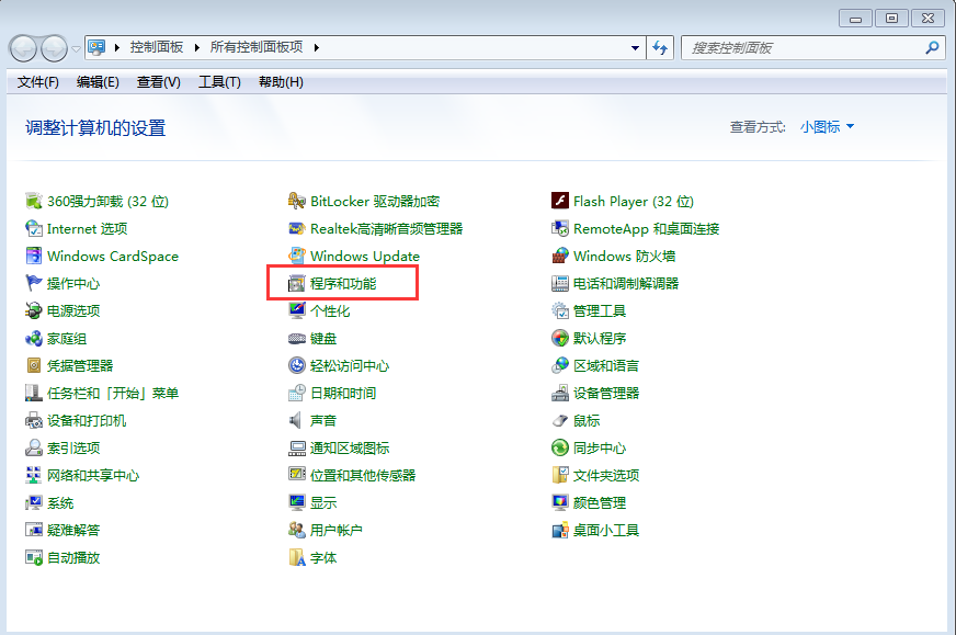 2、打開了“控制面板”之后,找到“程序和功能”,單擊打開進入;