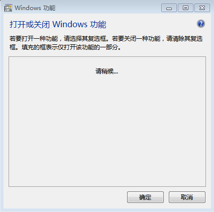 4、打開之后彈出一個“windows功能”對話,我們需要稍等一下,等它加載好;