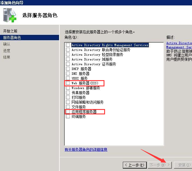 5、在“應用程序服務器”和“選擇角色服務”中直接點擊“下一步”;