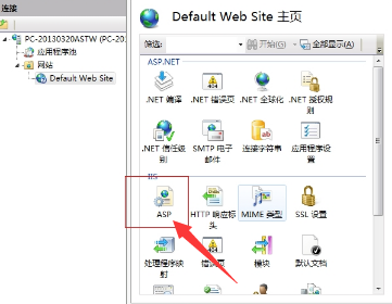 4、把“ASP”選上之后,我們再進入“Internet信息服務(IIS)管理器”,點擊自己的網站,在主頁上就會有了ASP這個選項,可以進行ASP設置了。
