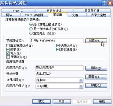 (設置主目錄,即你需要調試的asp程序所在的目錄)