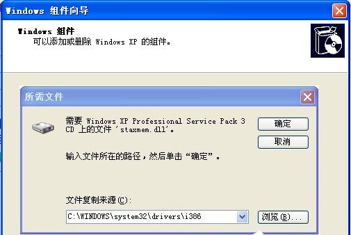 5、在安裝的過程中有幾個會彈出需要文件復制來源的,這時候我們下載的東西就起到作用啦,點擊瀏覽找到剛解壓的路徑,文件正確點擊確定就OK;