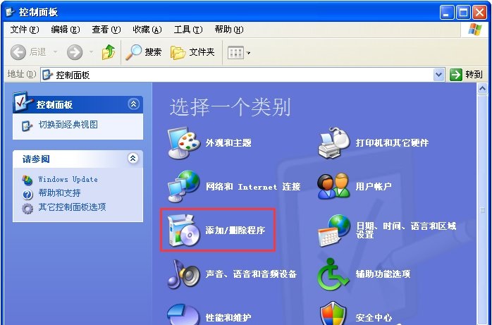 3、點擊開始調出控制面板,選擇“添加或刪除程序”;