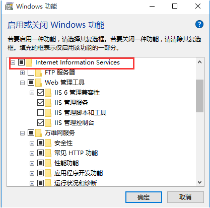 然后點擊確定按鈕,稍等大概2分鐘后Win10系統(tǒng)將會統(tǒng)開啟IIS服務(wù)功能。