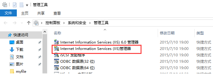 點擊上圖紅圈部分即可打開IIS管路器,如果經(jīng)常需要打開IIS管理器,可以右鍵紅圈,發(fā)送到桌面快捷鍵。
