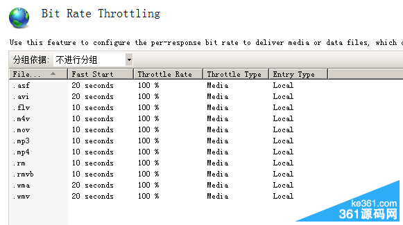 安裝完成后,可以在IIS管理工具里點(diǎn)擊“Bit Rate Throttling”節(jié)點(diǎn)。