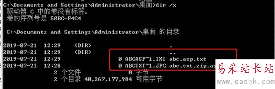 在Windows下查看對(duì)應(yīng)的短文件名,可以使用命令dir /x