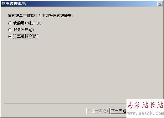 4.選擇“計算機帳戶”,點擊“下一步”: