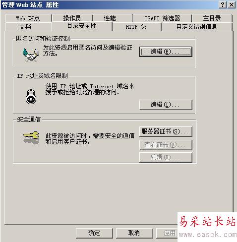11.然后打開Internet 服務管理器,選擇要安裝證書的網站,然后打開屬性,選擇“目錄安全性”: