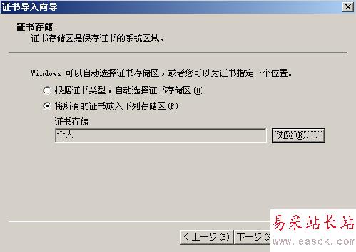 10.選擇將證書放入“個人”存儲區,點擊“下一步”,再選擇“完成”,則證書已經導入服務器。