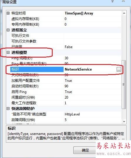 進程模塊---標識---選擇NetworkService(與數據庫中設置統一)