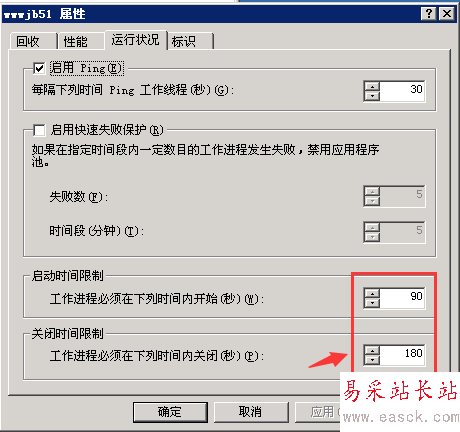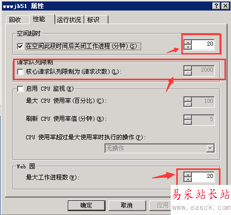 其次應(yīng)用程序池屬性的參數(shù)設(shè)置注意一下幾點(diǎn)