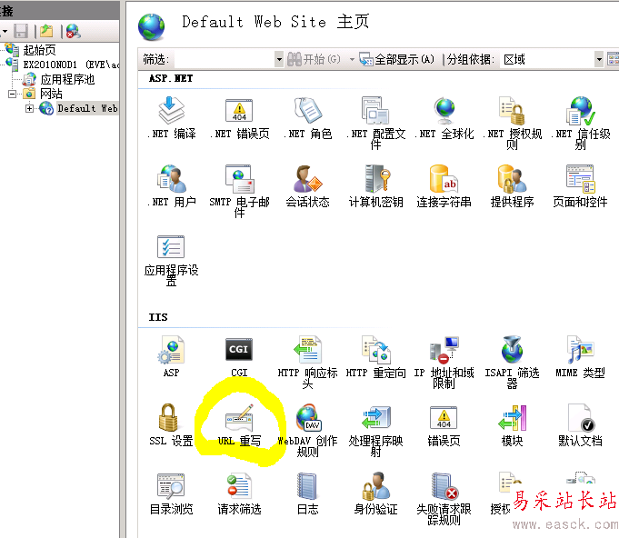 第二步:在安裝exchange 2010 CAS服務(wù)器上安裝IIS重寫模塊rewrite_x64,安裝完畢之后重啟IIS服務(wù),之后打開IIS控制臺,發(fā)現(xiàn)多了一個組件,如下所示: