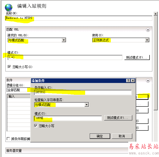 第四步:添加以下規(guī)則,如圖所示:(黃色部分是需要填寫或選擇的部分)