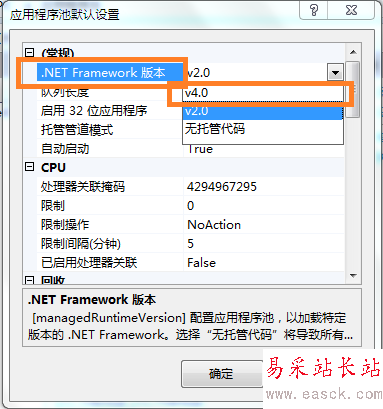 6、把“.NET Framework 版本”設置為v4.0,點擊“確定”即可