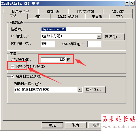 在“網站”選項卡的“連接”部分,清除“保持 HTTP 連接”復選框。