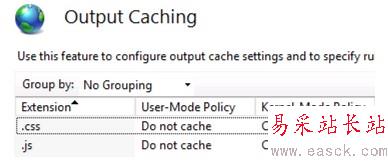 <add extension=".js" policy="CacheUntilChange" kernelCachePolicy="CacheUntilChange" duration="00:00:30" />