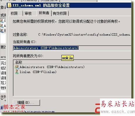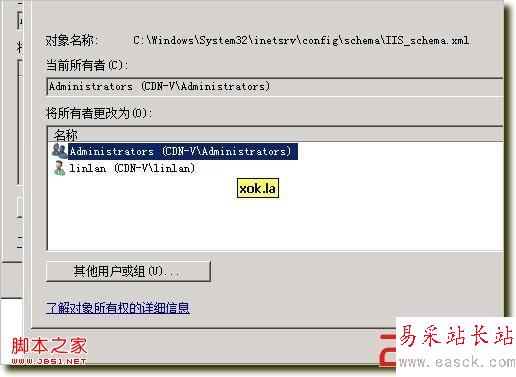 修改IIS_schema.xml這個文件要先獲得這個文件的控制權;