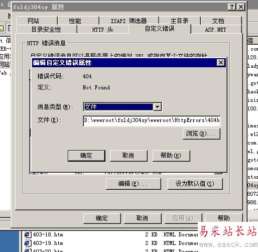 消息類型選擇文件,然后文件那里點擊瀏覽,選擇你自定義的錯誤頁面即可。如下圖所示: