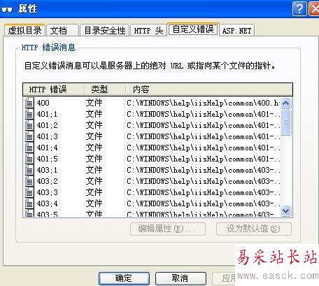第三步,在下面的:“http錯誤信息”框中找到404,選中雙擊,或者選中在點“編輯屬性”就能定義你網站404頁網頁地址了,此方法只適用于有服務器管理權的朋友,其它購買空間的朋友具體定義設置,請問你服務器運營商.