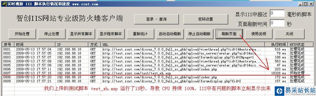 現在找到了是這個WEB站點引起CPU 100% 的,我如何知道是哪個URL呢?是哪個 ASP程序呢?