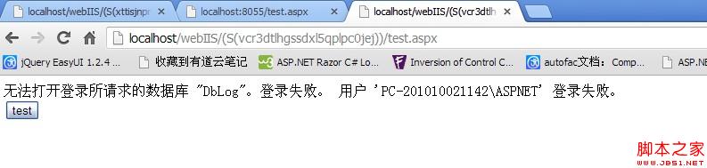 在IIS中訪問出現了問題,顯示的不是數據庫中的數據,而是在異常信息中顯示的異常信息。這是什么原因呢?看異常信息提示,打開數據庫失敗,這是為什么呢?從這個原因我們可以考慮幾個方面。