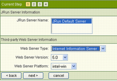 這是jrun默認的設置值,我們要把jrunservername改為jrundefaultserver,在這里我要特別強調一下,很多網上的資料都是讓大家在這一步,除了改變jrunservername的值外,別的便使用默認值.其實這樣是完全錯誤的,大家想想看,我們現在是在安裝了iis的基礎上來安裝jrun插件,但是你們仔細看一下圖中webservertype的值,它在默認的情況下是apachewebserver,當然版本也是apache服務器的版本,在確認這步時系統不會報錯,但是在第三步時我們將不會找到apacheconfig的路徑.因為我們本來就沒有安裝過它.所以請大家一定要記著把webserver type的值改為iis.而版本也會自動改變.如圖3