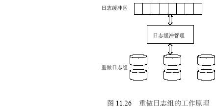 重做日志文件組記錄了數(shù)據(jù)庫(kù)的所有變化,其工作原理如圖11.26所示。