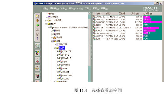 (2)在【名稱】單元格顯示的是表空間的名稱。