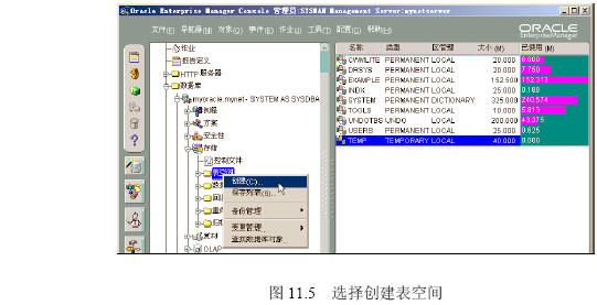 【參見光盤文件】:第11章/createtablespace.sql。