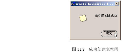 (4)成功創(chuàng)建表空間后出現(xiàn)如圖11.8所示的界面,單擊“確定”按鈕。
