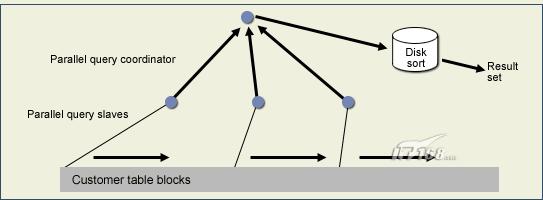 一旦表被劃分成塊,oracle啟用并行的子查詢(有時稱為雜務進程),每個子查詢同時讀取一個大型表中的一塊。所有子查詢完畢以后,oracle將結果會傳給并行查詢調度器,它會重新安排數據,如果需要則進行排序,并且將結果傳遞給最終用戶。opq具有無限的伸縮性,因此,以前需要花費幾分鐘的全表檢索現在的響應時間卻不到1秒。