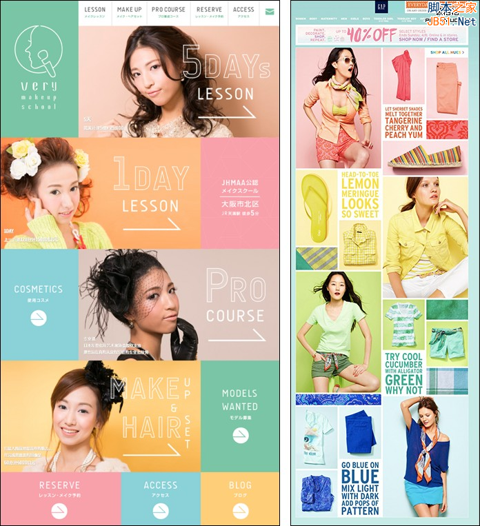 多色對比給人豐富飽滿的感覺 ,色彩搭配協調會使頁面會非常精致,模塊感強烈。