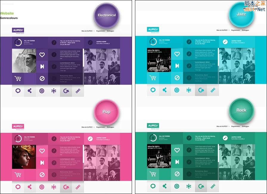 拿紫色界面來說,利用同一色相通過色調深淺對比,營造頁面空間層次。雖然色彩深淺搭配合理,但有些難以區分主次,由于是同一色相搭配,顏 色的特性決定著心理感受。