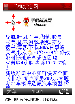 這哥們是最PC化的手機瀏覽器。內置偽鼠標一枚,左右鍵、上下鍵均為鼠標橫向、縱向移動,單次按鍵大概位移10像素,長按加速。