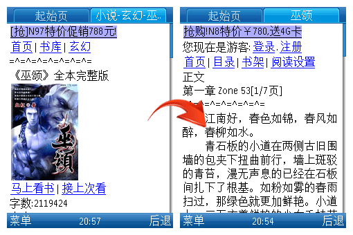 3. 眾所周知,用戶在操作鍵盤機的時候,在達到目標鏈接之前,基本都需要進行多次焦點移動的操作。而觸屏機則沒有這種限制,用戶的操作大多不再受物理按鍵的局限,更多是受到視覺感官的支配,換句話說就是看哪點到哪。這時需要注意的是,因為失去了“焦點”的提示,我們必須對可點擊的鏈接和不可點擊的文字進行明確的視覺區分。