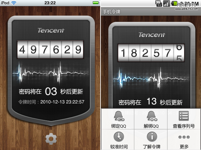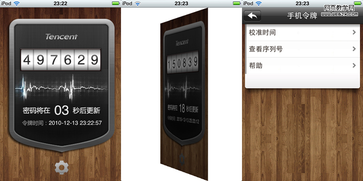 iPhone令牌的“設置”按鍵一目了然,即按即點,點擊后界面翻轉至背面進行設置,對于Android令牌,則必須充分利用“menu”和“返回”的物理按鍵,這樣也使得Android的頁面更加簡潔: