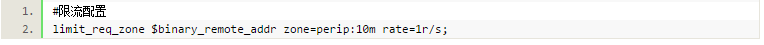 zone=perip: 表示 用 perip 這個 名稱 來標識 這行限流配置, 待會 會通過 perip 這個名稱來引用這行限流配置(也就是說限流配置是可以定義為多個的)