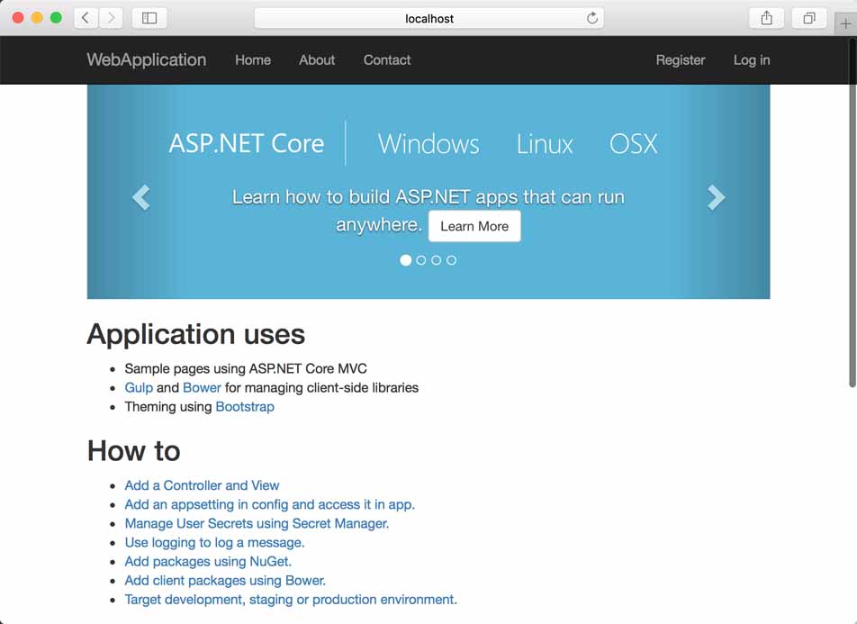 在 Asp.Net Core 項目中,我們使用 dotnet new -t WebApp 命令和創建一個新的空的 Web 應用程序。