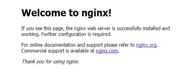 打開瀏覽器,在瀏覽器地址欄內(nèi)鍵入:http://127.0.0.1,如看到如下圖所示界面,說(shuō)明nginx正常工作。