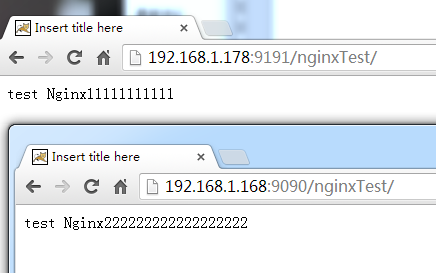 安裝過程很簡單,不述說了。分別在另兩臺Linux 機器(192.168.1.168 和 192.168.1.178)安裝Tomcat ,隨便部署個工程nginxTest 一個內容是 1111....... 一個是22222.......