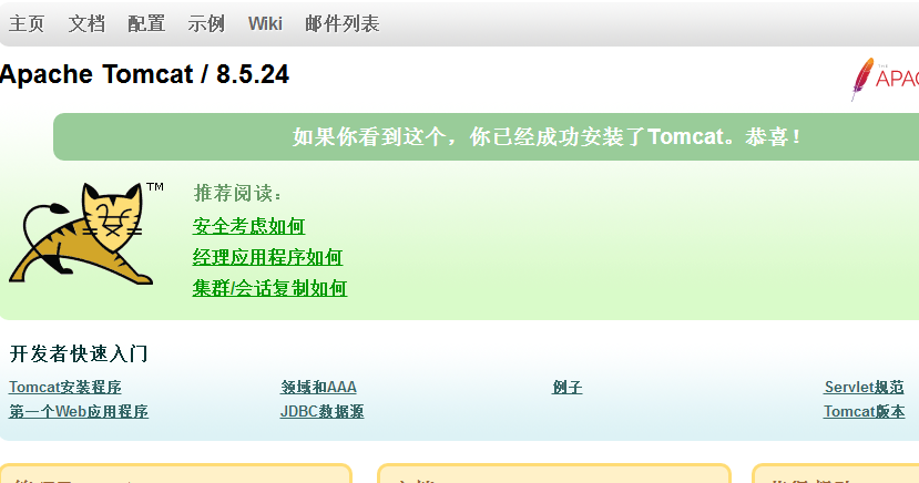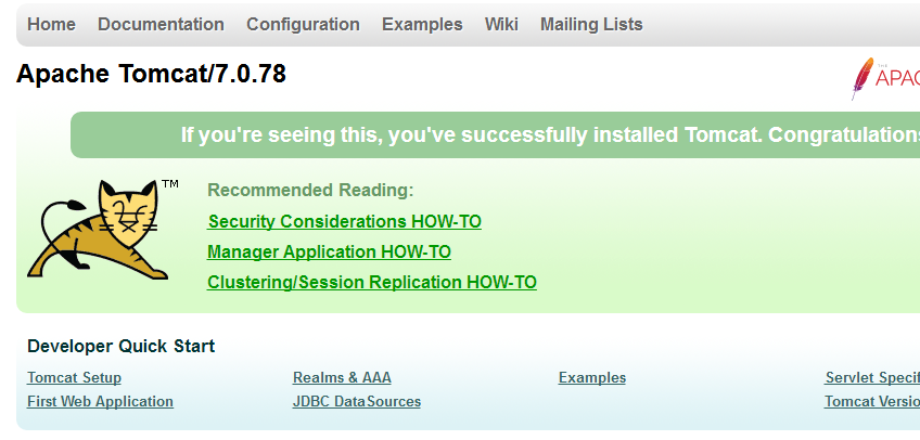 打開瀏覽器,輸入http://localhost:9080/,出現(xiàn)如下界面即tomcat啟動成功。另一個采用同樣的步驟即可。